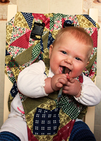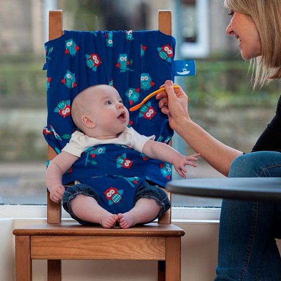 Totseat – это небольшая тканевая накидка, которая за пару секунд пристегивается к любому взрослому стулу со спинкой и превращает его в удобный и безопасный стульчик для кормления вашего малыша.